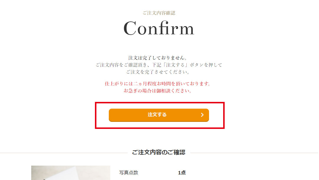 念のためお問い合わせの際に必要となりますご注文番号をお手元にお控えください。