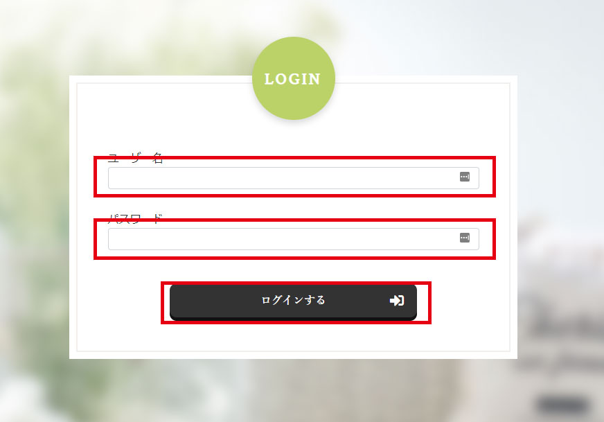 ユーザ名、パスワードを入力し、「ログイン」ボタンをクリックしてください。