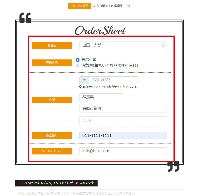5.注文内容を入力する