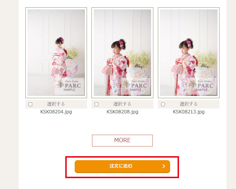 注文する写真を選択後、「注文に進む」をクリックしてください。